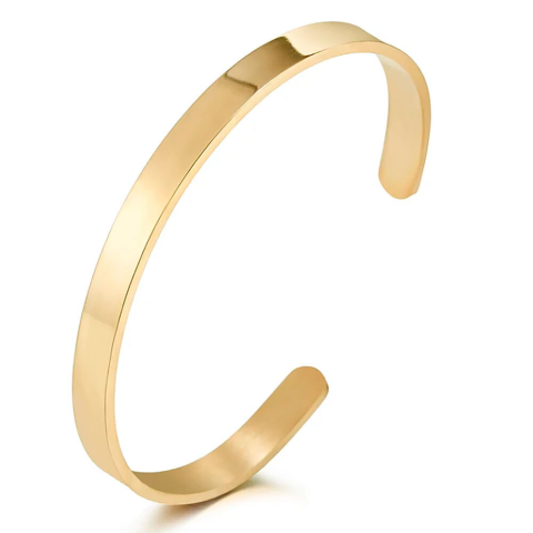 6 mm széles, hosszúsága kb. 17 cm, de vastagabb csuklóra is jó, mert nyitott fazon és kicsit állítható is. NEM ORVOSI ACÉL