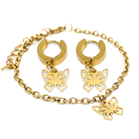 1 kép Nemesacél pillangós rozsdamentes acél karkötő + fülbevaló szett, arany színű