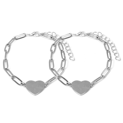 1 kép Nemesacél Szív charmos ezüst színű páros karkötő, hosszú szemes lánccal
