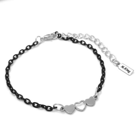 1 kép Nemesacél szív díszes karkötő, ezüst-fekete színű
