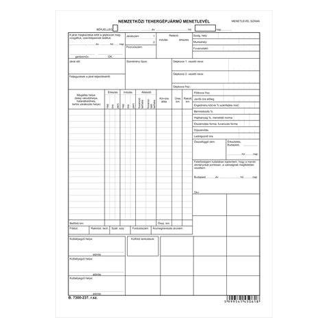 1 kép Nemzetközi tehergépjármű menetlevél, A3, B.7300-237