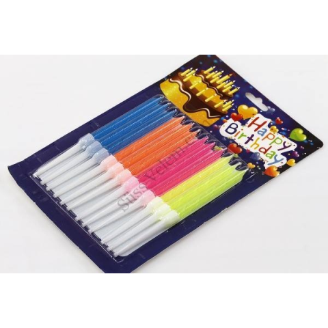 A készletben 12 szál neon színű tortagyertyát találsz.