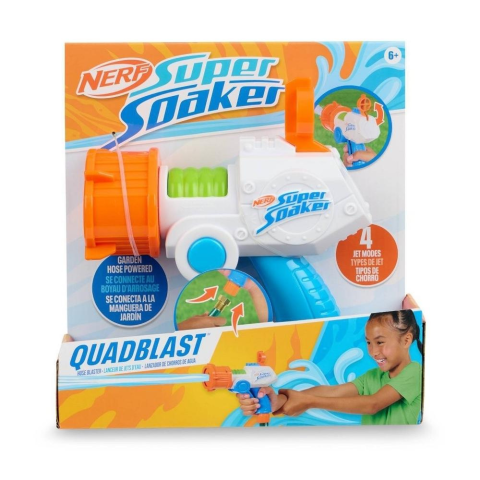 Készülj fel a nyári vízicsaták izgalmas harcaira a Nerf QuadBlast tömlőre csatlakoztatható vízipisztolyal!4 Jet mód a végtelen vízi szórakozásért:- Vékony vízsugár: pontos célzás a távoli ellenfelekre!- Vastag vízsugár: erőteljes vízáradat a közelharcokho