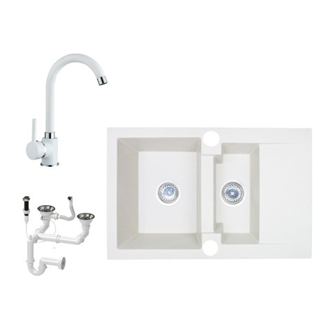 1 kép NERO D737-47BI Gránit Mosogató + Csap + Dugóemelő (fehér)
