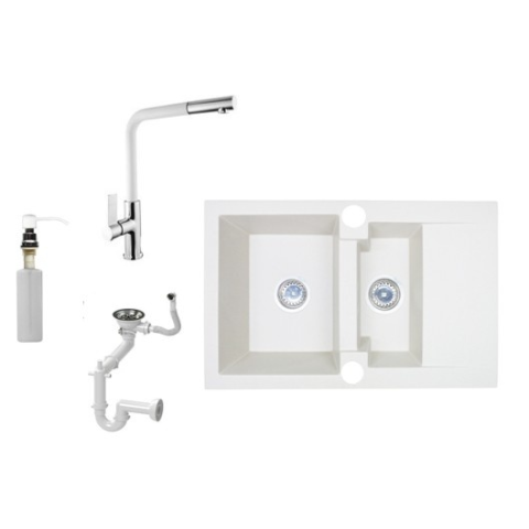 1 kép NERO D737-47BI Gránit Mosogató + Kihúzható csap + Adagoló (fehér)