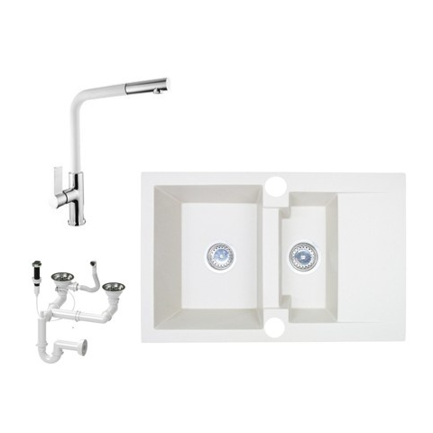 1 kép NERO D737-47BI Gránit Mosogató + Kihúzható csap + Dugóemelő (fehér)