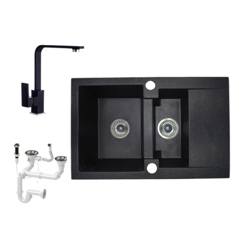 1 kép NERO D737-47C Gránit Mosogató + Design csap + Dugóemelő (fekete)