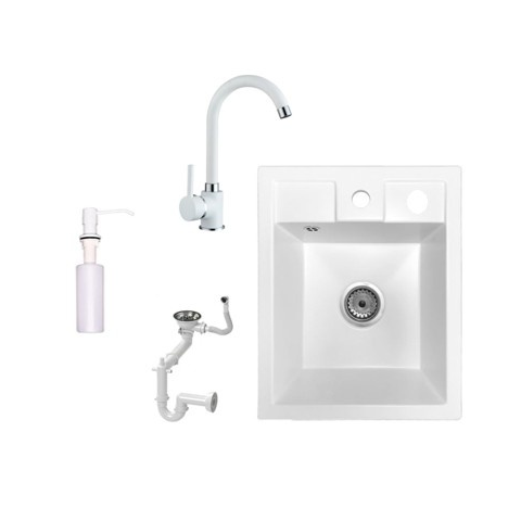 1 kép NERO M40BI Gránit Mosogató + Csap + Szifon + Adagoló (fehér)