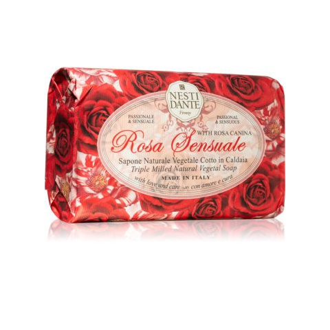 Rózsakollekció a Nesti Dante-tól. Vadrózsa hatóanyaggal dúsított természetes natúrszappan. Összetevők: Sodium palmate, Sodium cocoate, Sodium palmkernelate, Aqua, Parfum, Rosa Canina Fruit Extract, Glycerin, Sodium Chloride, Tetrasodium etidronate,