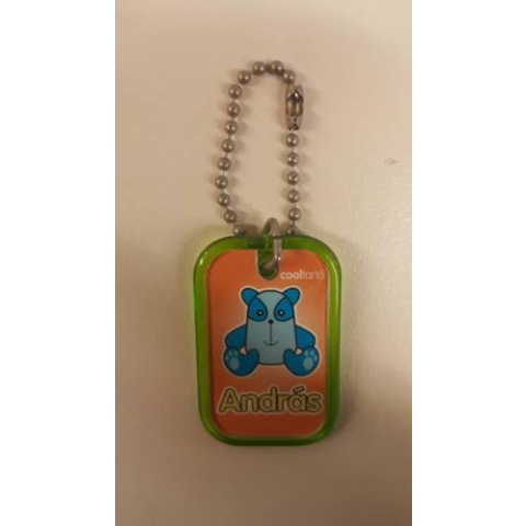 4 cm-es, műanyag, névre szóló kulcstartó.