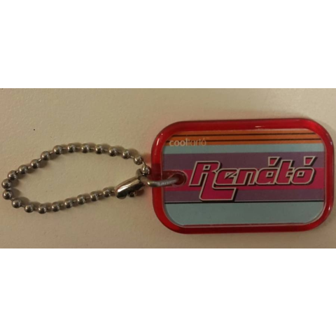 4 cm-es, műanyag, névre szóló kulcstartó.