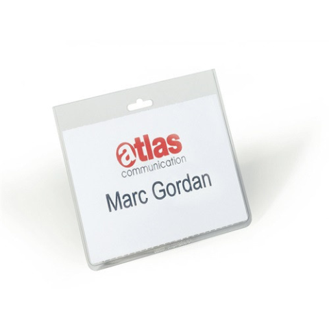 Névkitűző Durable 90x60 mm fekvő Víztiszta PVC biztonsági kártyatartó, klip nélkül A vízszintes kivágás lehetővé teszi, hogy kihúzható tartóval (8152) vagy textilszalaggal használják (8119)Méret: 60x90 mm fekvő