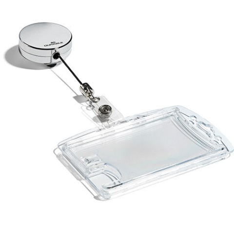 Névkitűző tartó Durable króm patentos kihúzható 85 cm szürke strapabíró, kihúzható névkitűzőtartó, stílusos, króm design-ban.extra erős szalaggal, melynek hossza 80 cm, és fém klippelátmérő: 40 mmszín: ezüst