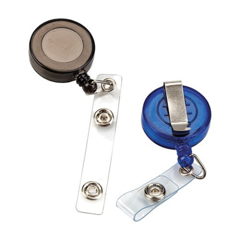 Névkitűzőtartó Centrum kihúzható patentos műanyag, kerek névjegykártya tartó patentos tartórész kihúzható, zsinór hossza: 85 cm