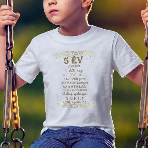 Névre szóló gyerek póló, boldog szülinapot. Gyerekeknek kiváló választás ez a feliratos póló. Lepd meg az ünnepeltet egy igazán különleges, személyre szabott ajándékkal! Ez az egyedi gyerek póló mutatja meg, hány év, hét, nap, óra, perc és másodperc telt