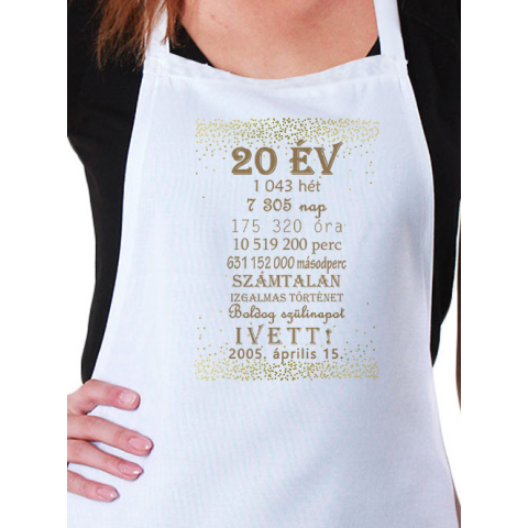 Névre szóló kötény, Boldog szülinapot. Férfiaknak és nőknek is egyaránt kiváló választás ez a feliratos kötény. Lepd meg az ünnepeltet egy igazán különleges, személyre szabott ajándékkal! Ez az egyedi kötény mutatja meg, hány év, hét, nap, óra, perc és má