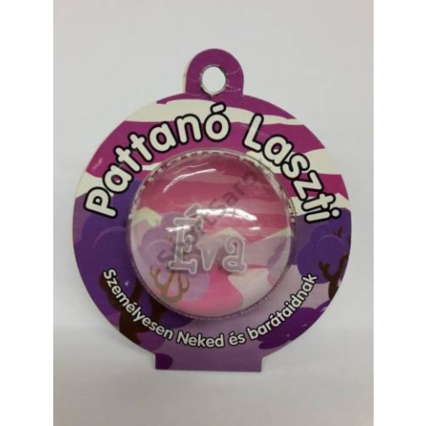 A névre szóló pattogó gumilabda lila-pink/átlátszó változatban. Jellemzői: 4cm, 0,04kg.