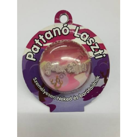 A névre szóló pattogó gumilabda lila-pink/átlátszó változatban. Jellemzői: 4cm, 0,04kg.