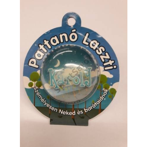 A névre szóló pattogó gumilabda világoskék-sötétkék/átlátszó változatban. Jellemzői: 4cm, 0,04kg.