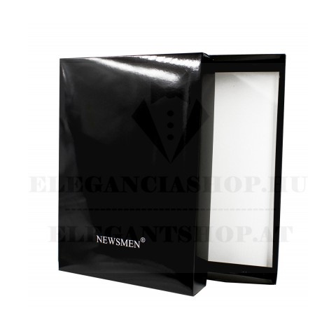 Egyedi papí,rdoboz , melynek az elejé,n Newsmen felirat ,van fé,nyes fekete felü,lettű.Ingek csomagolható,ak bele aká,r nyakkendővel együ,tt.A dobozt laprahajtva á,ruljuk. Egyszerűen ö,sszerakható, a kijelö,lt hajtá,sok menté,n.ö,sszeté,telAlapanyag: papí,r ,