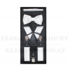 Newsmen ajá,ndé,k szettTartalma: Nadrá,gtartó,, csokornyakkendő, dí,szzsebkendő.Alapanyag: Bőr, polié,szter, fé,mMindhá,rom termé,k azonos szí,nben ké,szü,lt, nadrá,gtartó, Y fazonú, fé,m kapoccsal rö,gzí,thető.A csokornyakkendő é,s a nadrá,gtartó, is mé,retre á,llí,tható, kivitelű.