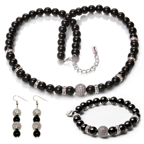 1 kép Night Glow – Fekete achát exkluzív ásvány ékszerszett (nyaklánc + karkötő + fülbevaló) dobozban