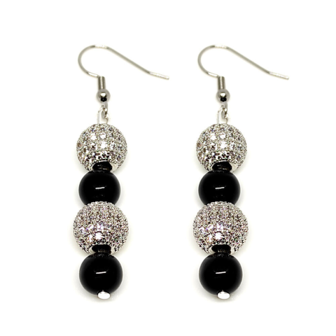 1 kép Night Glow – fekete achát strasszos díszes ásvány fülbevaló