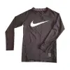Ez a Nike fekete fiú hosszú ujjú sport felső egy vagány, sportos darab, ami jól kombinálható bármilyen sportruházattal, de egy kényelmes farmernadrággal is működik. Kiváló választás edzésre, sportoláshoz vagy kikapcsolódáshoz,