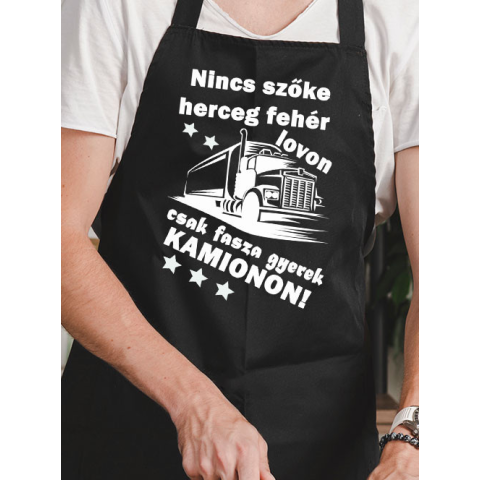 Nincs szőke herceg, kamionos mintás kötény. Nincs szőke herceg fehér lovon, csak fasza gyerek kamionon! Lepd meg kamionos barátod, férjed, apukád egy ilyen menő, humoros köténnyel, garantált sikert érhetsz el születésnapján, névnapján. A kötény fekete és