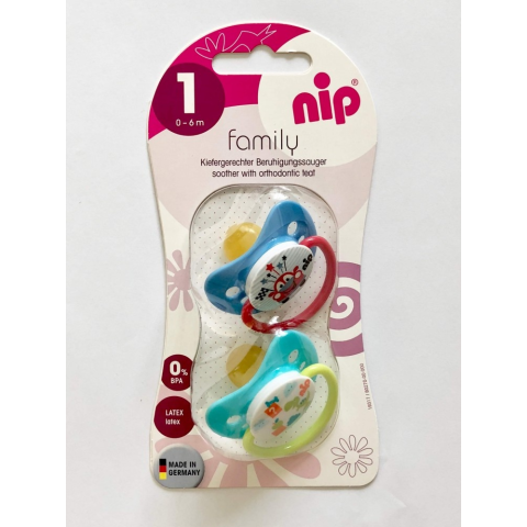 A Nip Family latex játszócumi 0-6 hónapos kor között használható, 2 db-os kiszerelésű, lányos mintával. Ortodontikus, az anyamellet utánzó formájúak, anatómiai kialakítású cumipajzsuk kényelmes lesz akkor is, ha a baba a hasán fekszik. Kisbabánk számára t