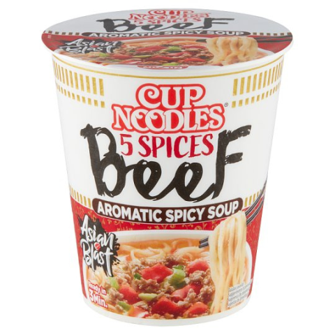 1 kép Nissin Cup Noodles poharas fűszeres instant tésztaleves marha ízesítéssel 64g