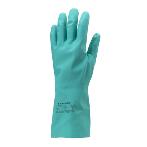 NITRIL, ZÖLD VEGYSZERÁLLÓ KESZTYŰ, 32CM/0,4MM, ÉRDESÍTETT_7 Zöld akrilonitril védőkesztyű, vastagsága: 0,38mm Bolyhozott pamut bélés, érdesített külső Hosszú egyenes mandzsetta Hossza: 33cm COVERPERF Bőrápolás: Bőrgyógyászatilag bevizsgálva, úgy, hogy