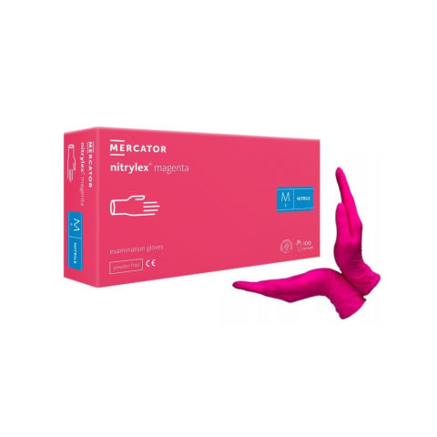 Nitrylex PF Púdermentes nitril kesztyű Magenta 100db L nitrylex® hagyományos púdermentes nitril kesztyű magenta (élénk rózsaszín) színben, amely védelmet nyújt a baktériumok, gombák és vírusok ellen. Univerzális termék magenta színben. Terméktípus: orvo