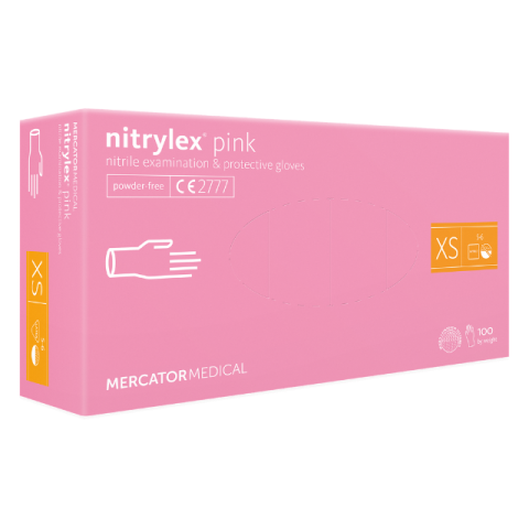 1 kép Nitrylex® pink púdermentes nitril vizsgáló kesztyű (rózsaszín) 100 db - XS, Nitril, 100