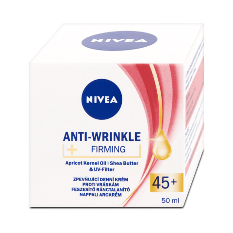 A Nivea 45+ ránctalanító nappali arckrém intenzíven ápolja bőrét, és segít feszesebbé is tenni azt értékes sárgabarackmag olaj és shea vaj összetételével. Bőrbarát, bőrgyógyászatilag tesztelt. UV szűrőkkel gazdagítva.