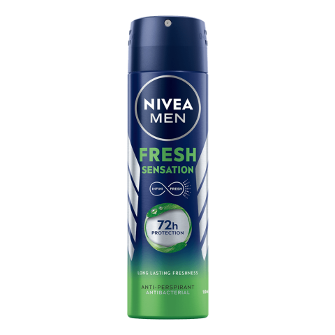 Friss érzés és hatékony védelem akár 72 órán át. Új INFINIFRESH technológia: antibakteriális hatás és hosszan tartó illat kombinációja: NIVEA MEN Fresh Sensation izzadásgátló deo spray.