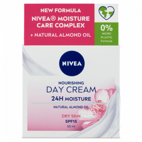 Mikroműanyag-mentes összetétel A formula NIVEA® Moisture Care Complex-et, természetes mandulaolajat és SPF 15 fényvédőt tartalmaz. - intenzíven hidratálja a bőrt akár 24 órán át - mélyen táplálja és puhává teszi a bőrt - 15-ös fényvédő faktorral segít meg