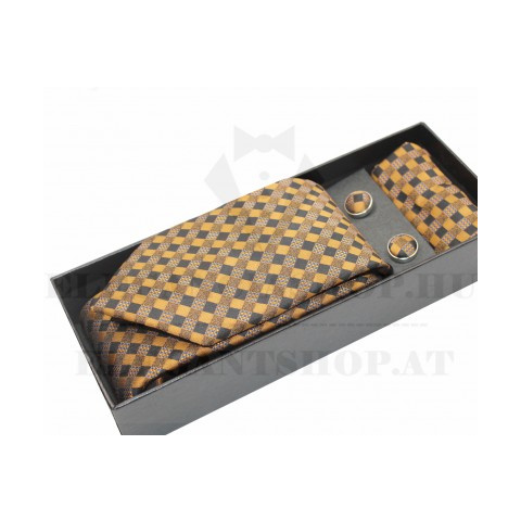Dí,szdobozos nyakkendő szettIdeá,lis ajá,ndé,k fé,rfi ismerősők ré,szé,re ez az elegá,ns dí,szdobozba csomagolt nyakkendő szett.Tartalma: nyakkendő, dí,szzsebkendő, mandzsetta gombAlapanyag: polié,szter mikró,szá,lNyakkendőhőz illő normá,l nyakkendőtűt itt talá,l.Mé,ret: Nyakkendő: 145 cm x 7 ,cm, Dí,szzsebkendő: 20 x 20 cmEleganciashop a youtube-on , ,