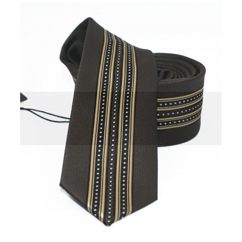 1 kép NM slim nyakkendő - Barna-arany csíkos
