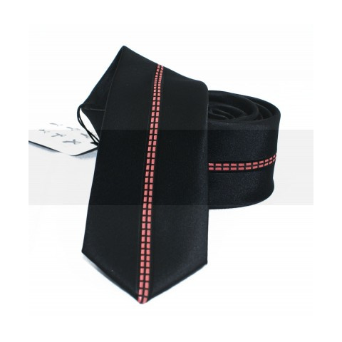 1 kép NM slim nyakkendő - Fekete-lazac csíkos