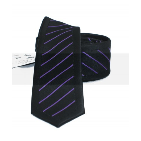 1 kép NM slim nyakkendő - Fekete-lila csíkos