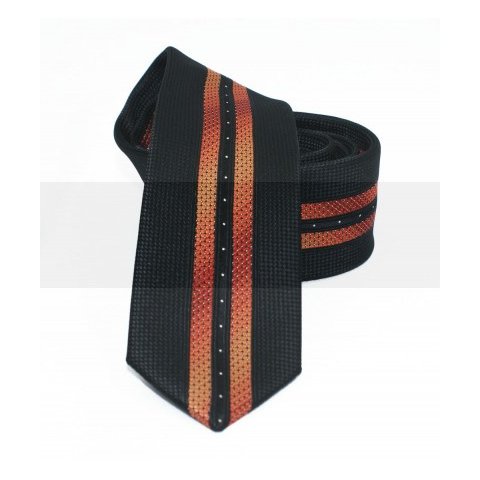 1 kép NM slim nyakkendő - Fekete-narancs csíkos