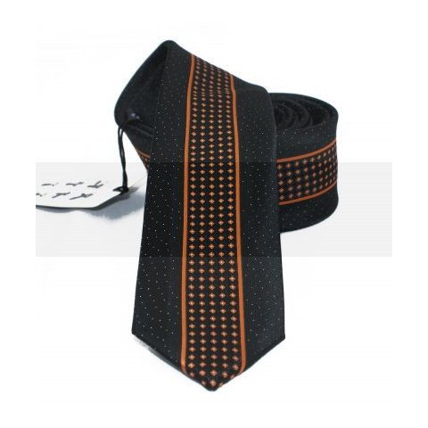 1 kép NM slim nyakkendő - Fekete-narancs pöttyös