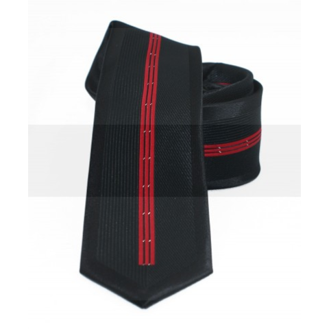 1 kép NM slim nyakkendő - Fekete-piros csíkos