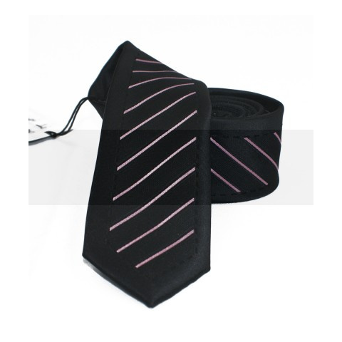 1 kép NM slim nyakkendő - Fekete-rózsaszín csíkos