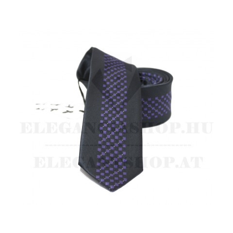 1 kép NM slim szövött nyakkendő - Fekete-lila mintás