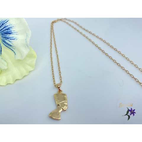 Nofertitit ábrázoló medál aprószemes láncon.Szin: 18K Méret : 55 cm /2 mm Medál: 22x12mm