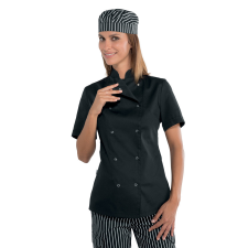 Termék részletei: A Lady Chef Fekete Patentos Rövidujjú Szakácskabát. Kiváló választás nők számára, akik séfként dolgoznak konyhában, étteremben vagy catering szolgáltatásnál. Patentos rögzítés. Klasszikus stílus. Cikkszám:057541M Különlegességek: paten