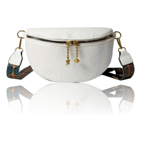 1 kép NŐI OLDALTÁSKA -VIRÁGMINTÁS- DOMBORNYOMOTT- FEHÉR-