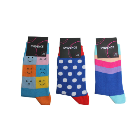 1 kép Női pamut zokni - 3 pár - kék - 35-38 - csíkos-pöttyös-kockás - Evidence